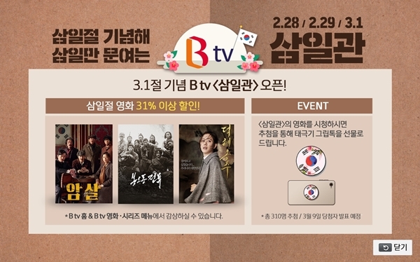 101주년 3.1절을 맞아 B tv 삼일관에 3.1절 관련 영화 할인 편성