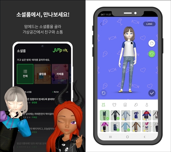 ‘버추얼 소셜월드’는 지금까지 '오큘러스 고' 등 HMD 기기를 착용하도록 디자인됐지만, 이젠 HMD 없이 스마트폰에서도 가상세계에서 어울릴 수 있게 됐다. 이번 모바일 버전은 ‘점프 VR’ 앱에 접속해 '마이룸(My Room)' 메뉴에서 본인의 아바타를 설정하고, 소셜룸을 선택해 들어가면 된다. 소셜룸 안에는 클럽룸, 카페룸 등 9개의 테마를 갖추고 있어 다른 아바타들을 만나 친구를 맺고 다양한 액티비티를 할 수 있다. 또 모바일 버전에서는 ‘버추얼 소셜월드’에서 찍은 아바타의 ‘셀피’를 더욱 손쉽게 SNS에 공유할 수도 있다.