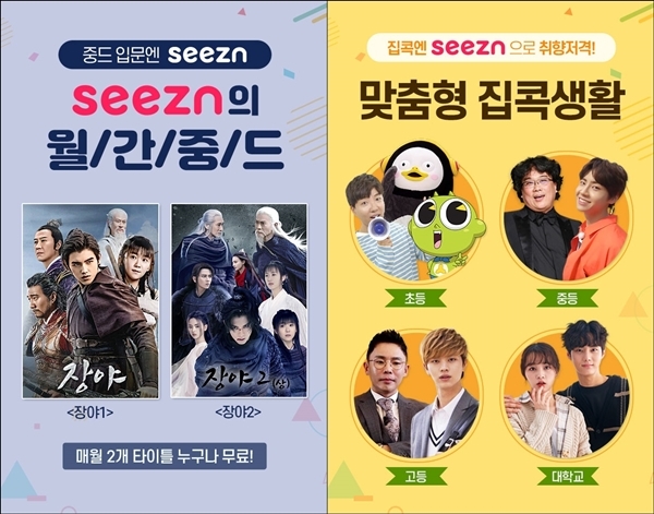 온라인 개학을 맞이한 초중고등학생과 대학생 이용자들에게는 연령별 취향 저격 콘텐츠를 소개하는 ‘맞춤형 집콕 생활’ 메뉴를 선보인다. 초등학생들에겐 좋아하는 만화, 크리에이터, 아이돌 안무 영상을, 중고등학생의 경우 '설민석 한국사', '세계속 한국인(봉준호 다큐)', 학원물 드라마 등을 제공한다.