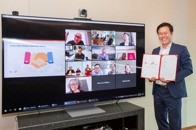 이미지 확대보기SK텔레콤은 유럽 1위 이동통신사 도이치텔레콤과 양사 경영진 20여 명이 참석한 대규모 화상 컨퍼런스를 열고, 5G·모바일 에지 컴퓨팅(MEC)·인공지능 등 K-ICT를 활용한 협력을 약속했다고 3일 밝혔다.