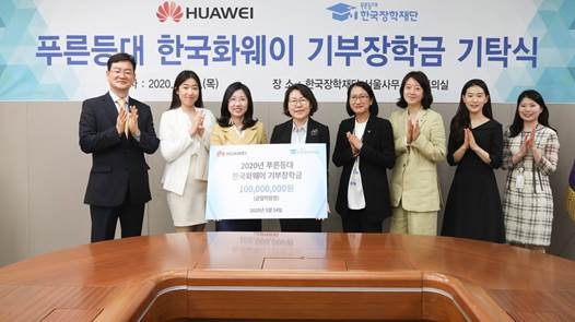 이미지 확대보기한국화웨이는 지난 14일 한국장학재단 서울사무소에서 코로나19로 어려움을 겪고 있는 공학계열 저소득층 대학생을 위해 '푸른등대 한국화웨이 기부장학금' 1억원을 기탁했다고 15일 밝혔다.
