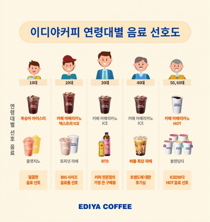 이디야커피가 지난해 자사의 모바일 멤버십 서비스 ‘이디야 멤버스’의 회원 데이터를 바탕으로 연령대별 소비 트렌드를 분석한 결과 30대인 것으로 나타났다고 22일 밝혔다.