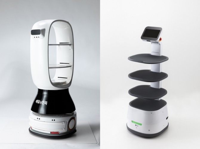 그중 딜리플레이트L01은 LG전자가 개발한 서빙로봇이다. 기존 서빙로봇에 비해 자율주행 수준이 뛰어나 매장 내 로봇 주행에 필요한 별도 설치물이 필요 없고 고도 센서 설계로 속도조절과 장애물 회피 기능이 우수하다.