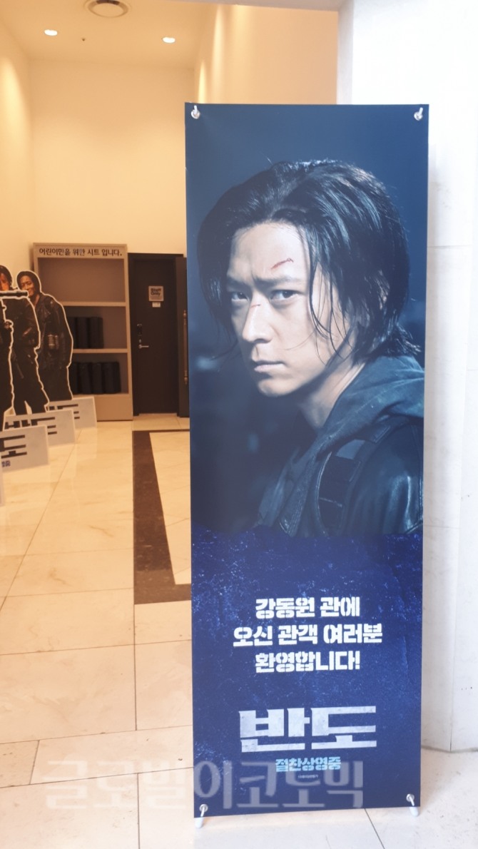 ‘이곳은 반도 강동원 관입니다’라고 적힌 간판 아래로 ‘반도’ 포스터 선간판과 군복 입은 강동원 선간판이 놓여있었다. 기념사진을 찍는 아줌마팬 몇 명을 지나 5평 남짓한 공간에 들어갔다. 이번에는 실물 크기로 제작된 ‘총 쏘는 강동원’ 선간판들이 일렬로 비치돼 있었다. 그 외에는 아무것도 없었다. ‘고작 선간판 몇 개 갖다 놓고 강동원 관이라고 하는 건가?’