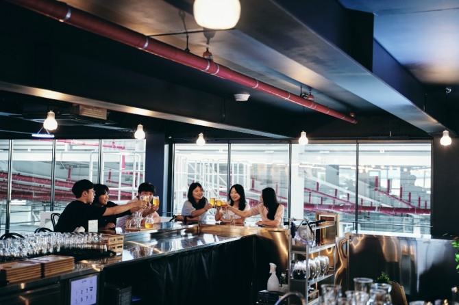 특히 양조장 내 테이스팅 랩은 신선한 맥주를 즐길 수 있는 펍(Pub)과 맥주와 관련된 다양한 문화를 체험할 수 있는 공간으로 이뤄졌다. 이곳은 삼면을 통유리로 설계해 실제 맥주가 생산되고 있는 양조 설비 전경을 관람하며 맥주를 즐길 수 있어 색다른 재미를 선사한다.