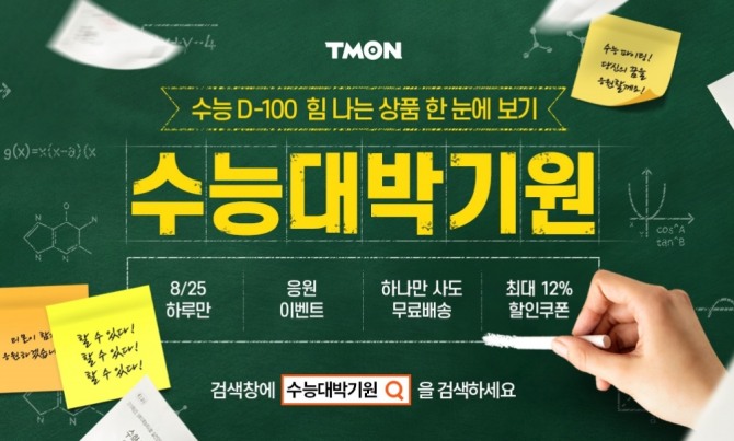 티몬은 25일 단 하루 동안 수능을 100일 앞둔 수험생을 위한 '수능대박기원' 기획전을 연다고 밝혔다.