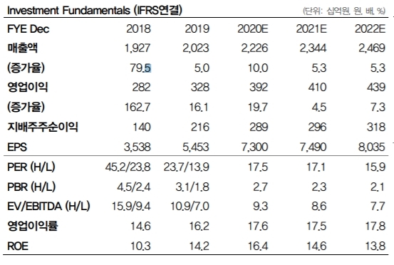 차재헌 DB금융투자 연구원은 "주가는 2021년 예상실적기준으로 주가수익비율(PER) 17.1배 수준까지 하락했다”며 “최근 주가조정으로 밸류에이션(가치평가)부담이 완화됐으며 춘절 등 계절영향에 따른 추가하락시 저가매수 접근을 추천한다”고 조언했다.