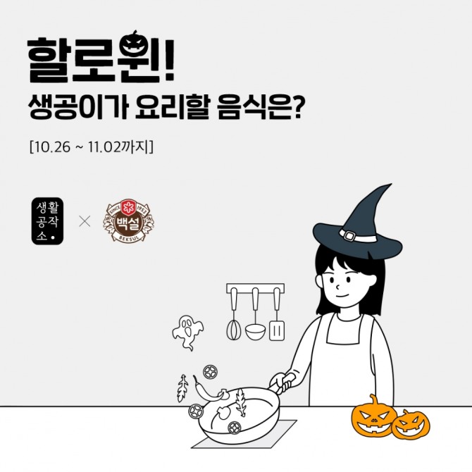 이미지 확대보기생활공작소는 CJ제일제당의 브랜드 ‘백설’과 함께 핼러윈 제품 관련 판촉 행사를 오는 11월 2일까지 SNS와 공식 온라인몰에서 진행한다.