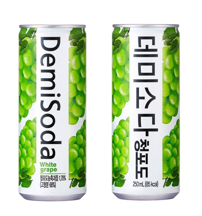 이미지 확대보기데미소다 청포도는 250㎖ 캔에 청포도 과즙을 11% 담은 제품으로 청포도 에이드 맛을 느낄 수 있는 것이 특징이다.