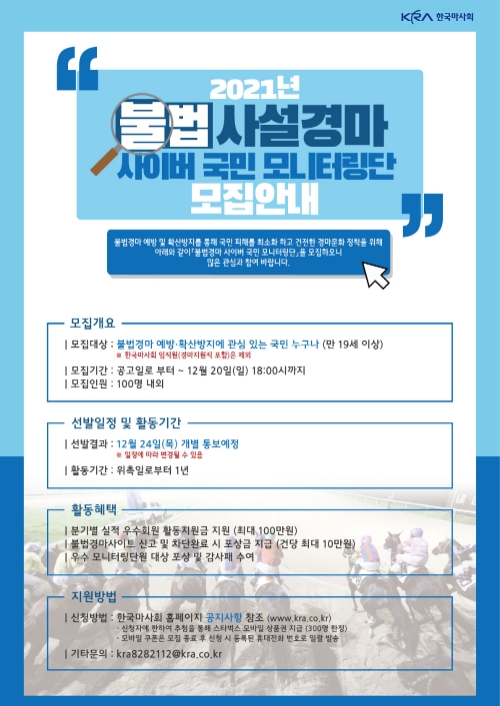 12월 20일까지 '불법경마 사이버 국민 모니터링단' 모집...19세 이상 누구나 참여 가능