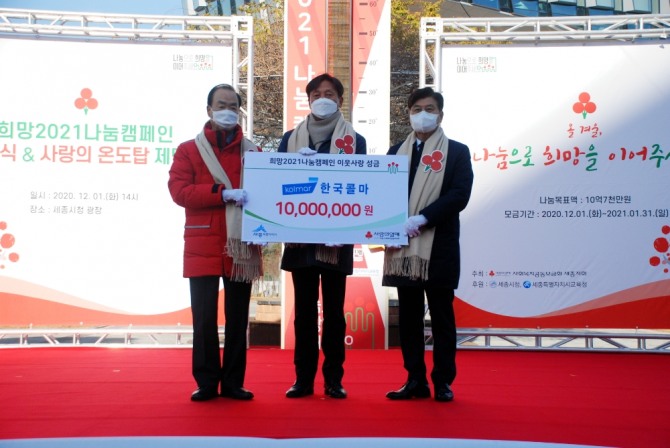 한국콜마는 10월 한국아동청소년그룹홈협의회와 아동청소년그룹홈을 지원하는 협약을 체결하고 2000만원 상당의 후원금과 KF-94 마스크 2만 장을 지원했다. 이달 초에는 세종시와 세종사회복지공동모금회가 주최하는 '희망2021나눔캠페인' 출범식을 열고 아동복지사업인 드림스타트 후원을 개시했다.
