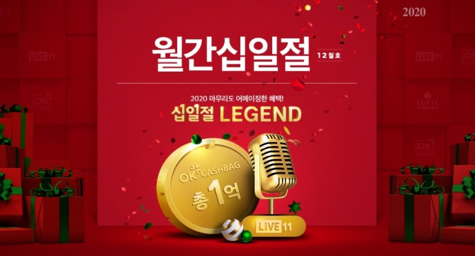 11번가는 총 10만 명을 추첨해 OK캐쉬백 1000포인트씩, 총 1억 원 상당의 포인트를 지급한다. KB국민, 삼성, NH농협, 현대, 씨티 등 5개 카드사 할인 쿠폰도 제공한다.