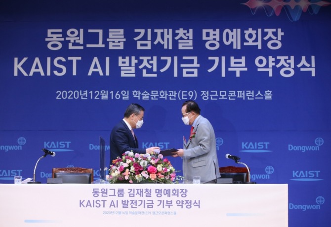 신성철 KAIST 총장도 "대한민국의 과학기술 발전과 AI 강국 대한민국을 만들기 위해 노블레스 오블리주 정신을 몸소 실천하신 김재철 동원그룹 명예회장님께 경의를 표한다ˮ면서 "KAIST의 역할과 임무에 대한 사명감을 항상 마음에 새기고 김 명예회장님의 기부를 토대로 KAIST가 AI 인재 양성 및 연구의 세계적 허브가 되도록 최선을 다할 것ˮ이라고 화답했다.