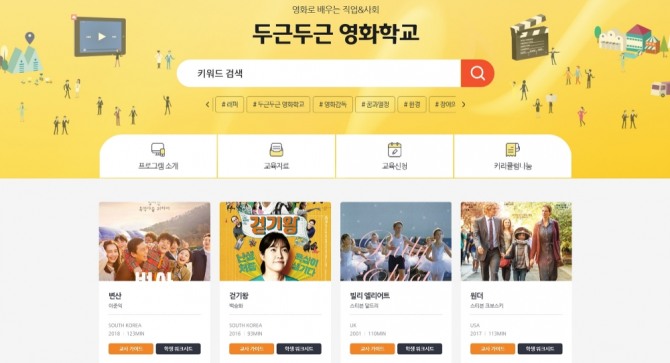 이와 함께 CGV는 선생님들이 학교에서 영화 매개의 다양한 교육을 진행할 수 있도록 두근두근 영화학교 온라인 홈페이지를 개설했다. 홈페이지는 영화 교육에 활용할 수 있는 교사 가이드와 학생 워크시트를 제공한다. 교사들이 직접 기획한 교육과정도 자유롭게 공유할 수 있다.