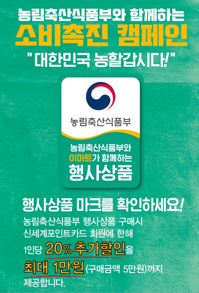 이마트도 같은 기간 농림축산식품부와 협업해 다양한 농산물 할인 혜택을 선보인다.