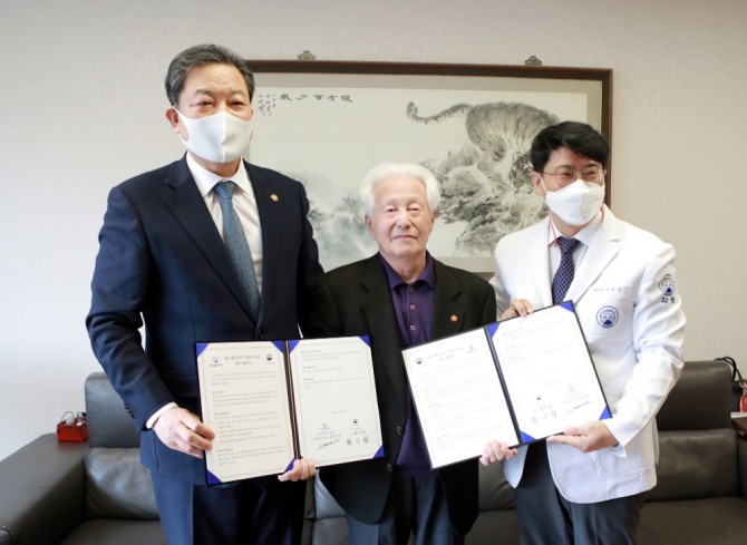 이날 협약식은 자생의료재단 신민식 사회공헌위원장, 국가보훈처 황기철 처장 등 양 기관 주요 관계자들이 참석한 가운데 서울시 강남구 소재 승병일 애국지사의 자택에서 진행됐다.