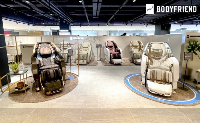 바디프랜드 최상위 모델인 '파라오SⅡ COOL'과 대표 모델인 '파라오Ⅱ' 등 다양한 가격대의 안마의자 체험이 가능하고 자가교체 직수형 정수기 'W정수기'도 함께 만나볼 수 있다.