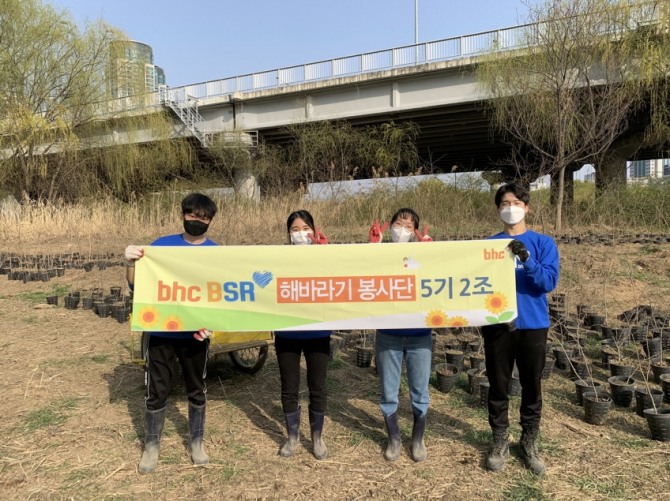 이미지 확대보기bhc치킨은 해바라기 봉사단 5기 2조가 지난 19일 서울시 영등포구에 있는 여의샛강생태공원을 방문해 유목(어린 나무)을 대지에 옮겨 심는 봉사 활동을 펼쳤다고 22일 밝혔다.