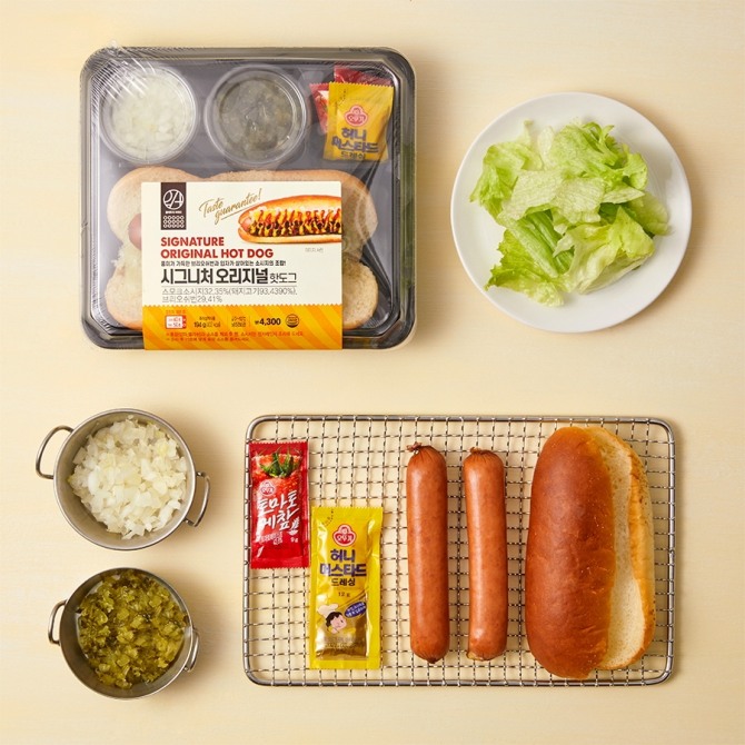 시그니처 오리지널 핫도그는 탱글탱글한 식감과 풍부한 육즙, 감칠맛이 우수한 ‘쟌슨빌 소시지’과 빵의 풍미를 충분히 느낄 수 있는 ‘브리오슈번’을 활용한 제품이다. 특히 빵이 눅눅해지는 것을 방지하기 위해 고객이 직접 만들어 먹을 수 있도록 별도로 다진 피클과 양파, 케첩, 허니머스터드 소스를 동봉한 점이 특징이다.