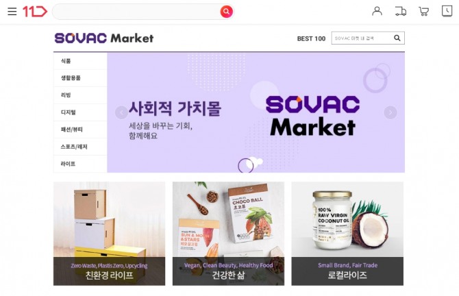 11번가는 더 많은 고객들이 '착한 소비'에 동참할 수 있도록 'SOVAC 마켓 오픈 기획전'을 진행한다. 30% 할인 쿠폰을 제공해 많은 고객들이 사회적기업의 상품을 구매할 수 있도록 했다.