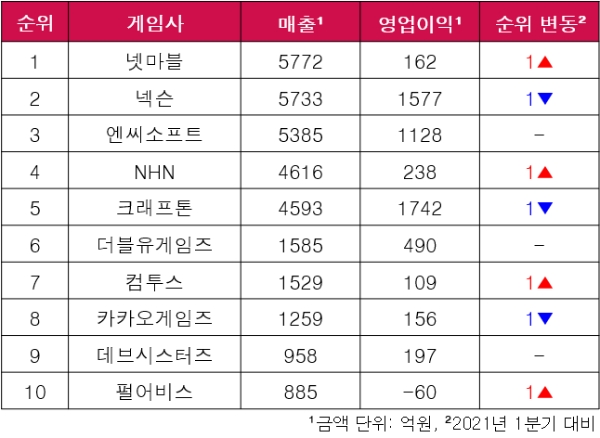한편, 넷마블은 신작 '제2의 나라: Cross Worlds'가 한일 양국에서 흥행한 데 힘입어 근소한 차이로 넥슨을 제치고 매출 1위에 올랐다. 그러나 마케팅 비용, 인건비 등 영업비용 문제로 영업이익은 100억 원 대에 머물렀다.