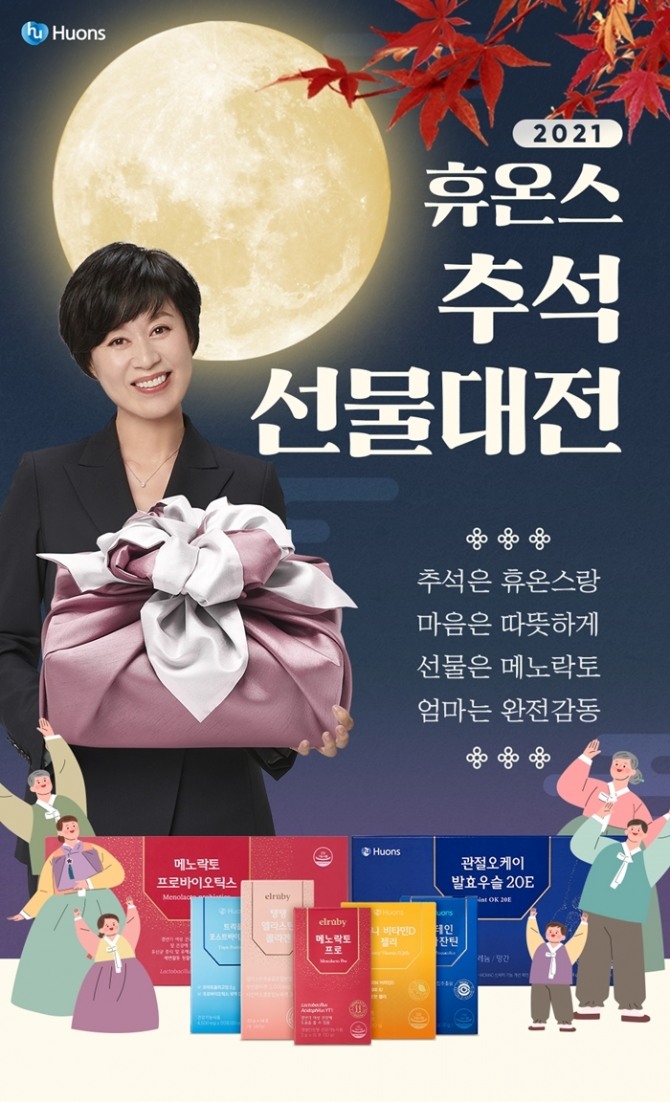 이번 추석 프로모션에서는 휴온스 대표 건강기능식품인 갱년기 유산균 '엘루비 메노락토 프로바이오틱스', '엘루비 메노락토 프로'와 고함량 비타민 '메리트C'를, 신제품 '관절오케이 발효우슬 20E', '살사라진 감량전환' 등 다양한 제품을 최대 66% 할인가에 판매한다.