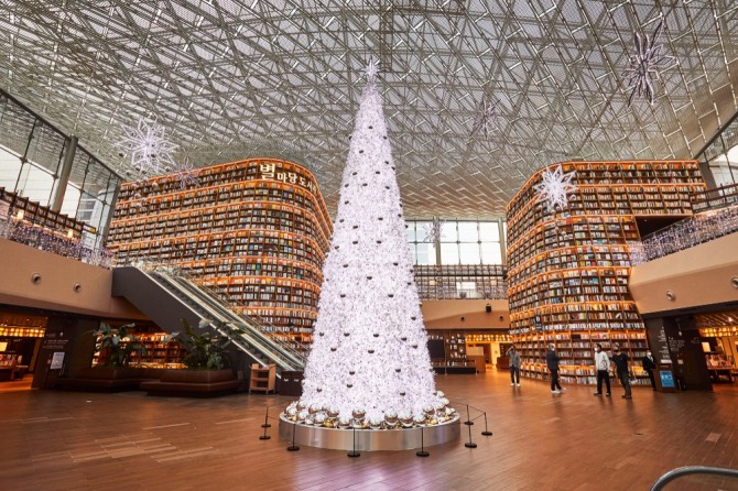 별마당 도서관의 크리스마스트리는 프랑스 라파예드 백화점 등 전 세계 명소의 대형 트리를 제작해온 벨기에 왕실 인증기업 ‘글로벌 콘셉트(Globall concept)’와의 협업으로 완성됐다. 유럽의 감성을 그대로 담은 ‘실버 트리’는 높이 10m 규모로, 별마당 도서관의 상징인 대형 서가와 어우러져 웅장하면서도 기품 있는 분위기를 자아낸다.