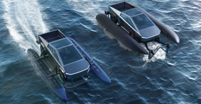 미국 UC버클리대에서 재료공학과 박사과정을 밟고 있는 그가 개발한 장비의 이름은 ‘사이버캣 카타마란(Cybercat Catamaran)’으로 사이버트럭을 쌍동선(선체를 두 개 연결한 범선)과 비슷한 형태로 바꿔 물 위를 달릴 수 있도록 한 게 특징이다. 아직은 렌더링 이미지만 완성됐고 실제 제품은 향후 출시 예정이다.
