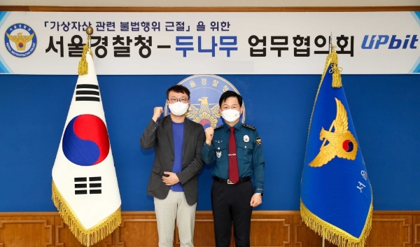 이미지 확대보기서울 종로구 서울경찰청서 열린 이번 회의는 최관호 서울경찰청장과 두나무의 김형년 부회장·정민석 COO(최고운영책임자) 등이 참여했다.