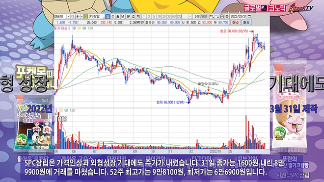 SPC삼립은 가격인상과 외형성장 기대에도 주가가 내렸습니다. 31일 종가는 1600원 내린 8만9900원에 거래를 마쳤습니다. 52주 최고가는 9만8100원, 최저가는 6만6900원입니다.