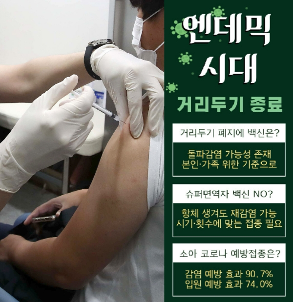 거리두기 폐지 뒤 엔데믹 시대가 본격화되면 백신 접종을 꺼리는 사람들이 늘 것으로 예상된다. 이미 25%에 육박하는 인구가 확진됐고 돌파감염되는 경우도 많아 추가접종 기피 현상이 나타나고 있다. 하지만 코로나 감염시 중증화율을 낮추고 재감염 가능성을 최소화하려면 완치자도 권장 시기·횟수에 맞는 백신 접종이 필요하다.