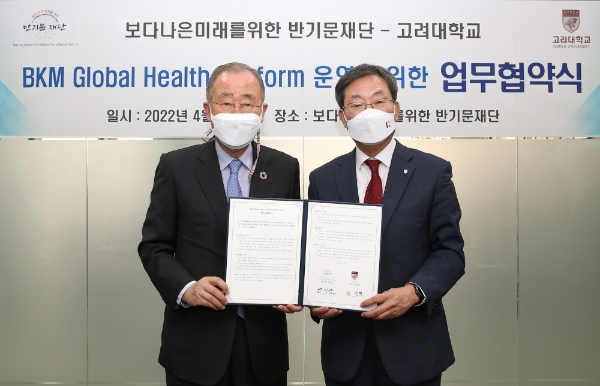 이번 협약에 따라 고려대학교와 반기문재단은 상호협력하에 플랫폼 운영유지 및 활성화에 매진하게 되며, 이를 통해 신종 감염병과 팬데믹을 예측하고 대비해 글로벌 공중보건 향상에 기여한다는 계획이다.