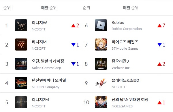 출시 3주차를 맞이한 엔젤게임즈 신작 '신의 탑M: 위대한 여정'이 10위를 차지한 가운데 넷마블 '블레이드 앤 소울 레볼루션', 4399게임즈 '기적의 검', 넥슨 '피파 온라인 4M', 슈퍼셀 '브롤스타즈', NHN '한게임 포커' 등이 그 뒤를 따랐다.