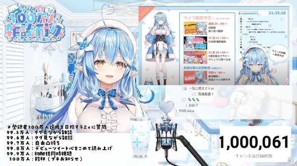 이미지 확대보기구독자 99만5000명인 상태로 방송을 개시한 라미는 이날 동료들과 전화하거나 데뷔 당시의 영상을 함께 보는 콘텐츠를 진행했다. 100만 구독자를 달성한 후 시청자들에게 "정말 고맙고 사랑한다"는 말을 남기고 방송을 종료했다.