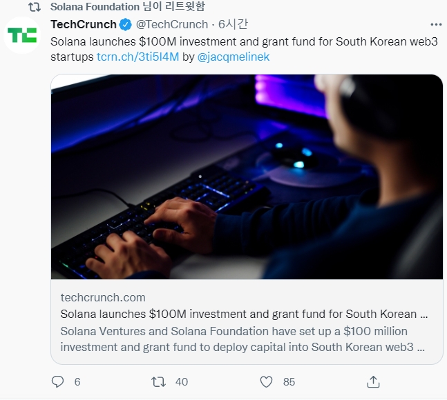 이미지 확대보기테크런치(TechCrunch)는 8일 솔라나 벤처스와 솔라나 재단은 한국의 웹3 스타트업에 자본을 투입하기 위해 1억 달러(약 1255억 원)의 투자와 기금을 조성했다고 솔라나 랩스의 게임 총괄 책임자인 조니 리(Johnny Lee)가 말했다고 보도했다.