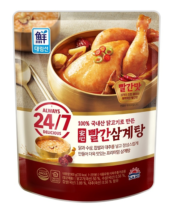 이미지 확대보기종합식품기업 사조대림이 프리미엄 삼계탕 '대림선 24/7 안심 빨간삼계탕'을 출시했다고 23일 밝혔다.