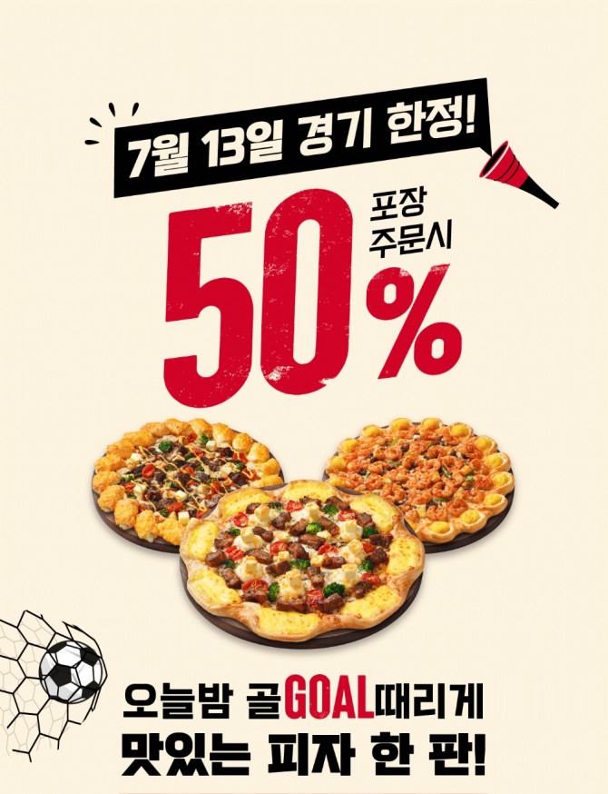 피자헛 관계자는 "축구팬들이 피자헛과 함께 즐거운 시간을 보낼 수 있도록 이번 프로모션을 준비했다"라며 "이번 프로모션을 통해 부담 없는 가격으로 맛있는 피자와 축구를 함께 즐겨보시길 바란다"고 말했다.