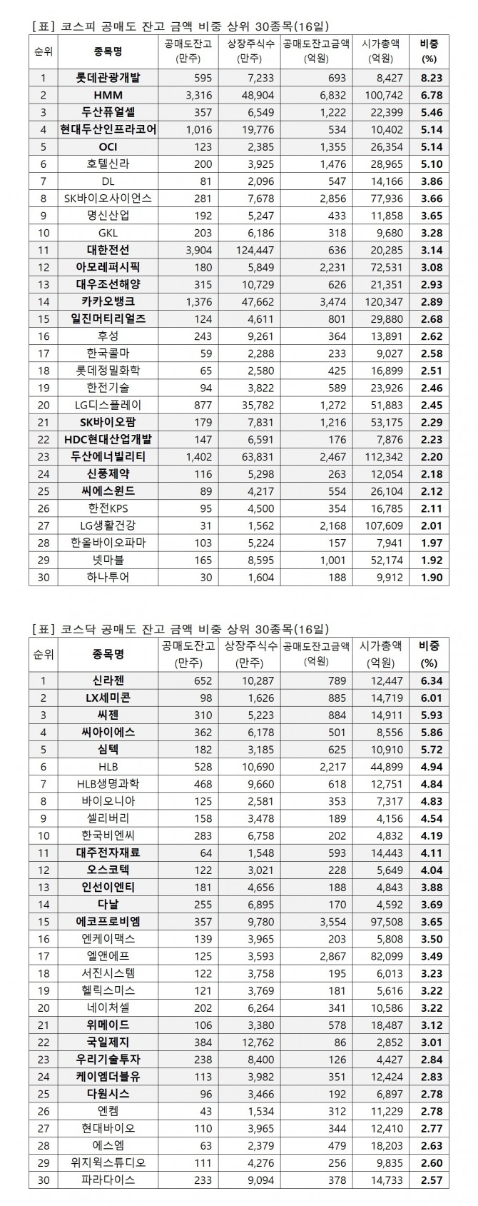 이미지 확대보기유가증권시장 시가총액 대비 공매도 잔고금액 비중(16일)