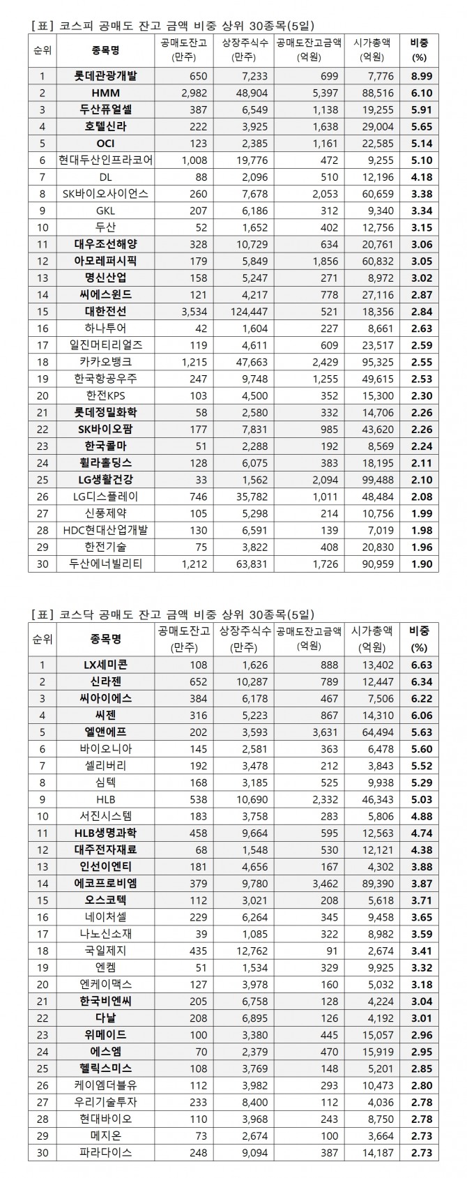 1위 롯데관광개발 698억원(8.99%), 2위 HMM 5396억원(6.1%), 3위 두산퓨얼셀 1138억원(5.91%), 4위 호텔신라 1638억원(5.65%), 5위 OCI 1160억원(5.14%), 6위 현대두산인프라코어 471억원(5.1%), 7위 DL 509억원(4.18%), 8위 SK바이오사이언스 2052억원(3.38%), 9위 GKL 312억원(3.34%), 10위 두산 402억원(3.15%), 11위 대우조선해양 634억원(3.06%), 12위 아모레퍼시픽 1856억원(3.05%), 13위 명신산업 270억원(3.02%), 14위 씨에스윈드 778억원(2.87%), 15위 대한전선 521억원(2.84%),