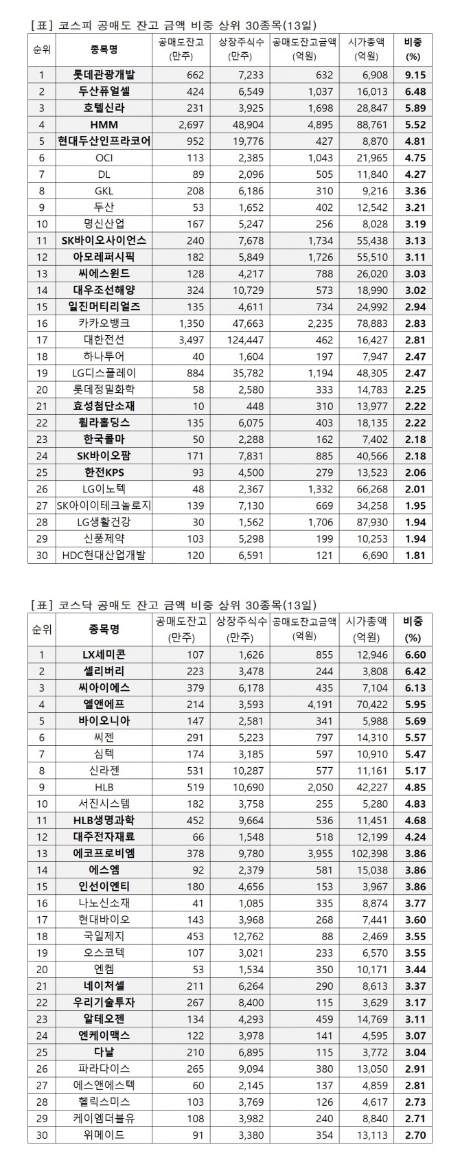 이미지 확대보기유가증권시장 시가총액 대비 공매도 잔고금액 비중(13일)
