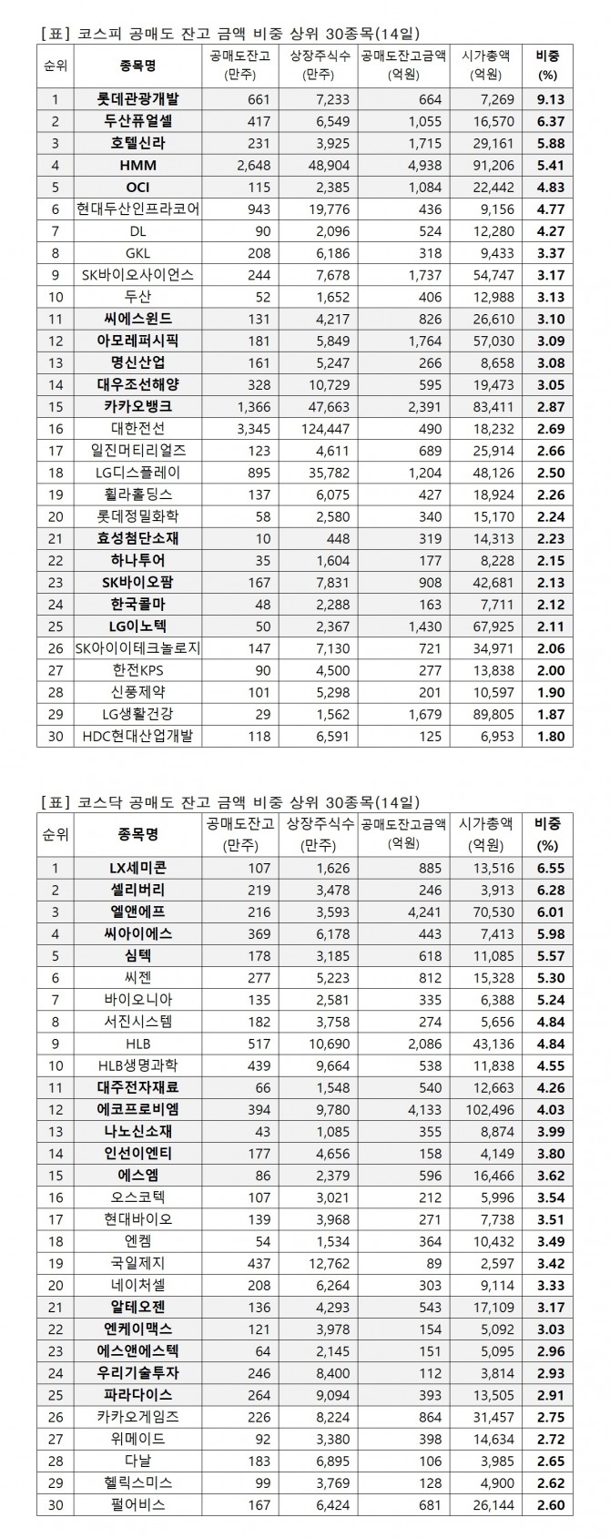 이미지 확대보기유가증권시장 시가총액 대비 공매도 잔고금액 비중(14일)