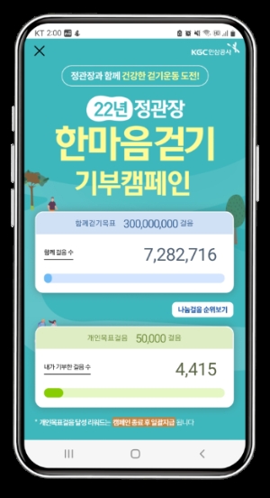 ◆ KGC인삼공사, ‘한마음 걷기 캠페인’ 진행