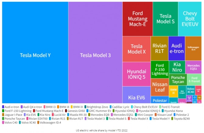 전기차 제조업체별로 보면 테슬라가 여전히 선두 자리를 꿰차고 있지만 종전보다 시장 점유율은 줄어든 것으로 파악됐다. GM과 포드를 비롯한 테슬라의 경쟁업체들이 테슬라와 격차를 좁히는데 성공했기 때문이다.