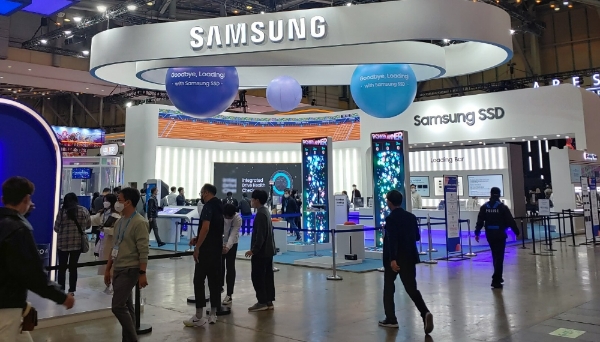 이미지 확대보기부산 벡스코에서 17일 개막한 지스타에서 삼성전자는 제1전시관에 자체 부스를 열고 990 프로, T7 실드 등 고형보조기억장치(SSD)와 게임용 모니터 '오디세이 OLED G8' 등 각종 게임기어들을 전시했다.