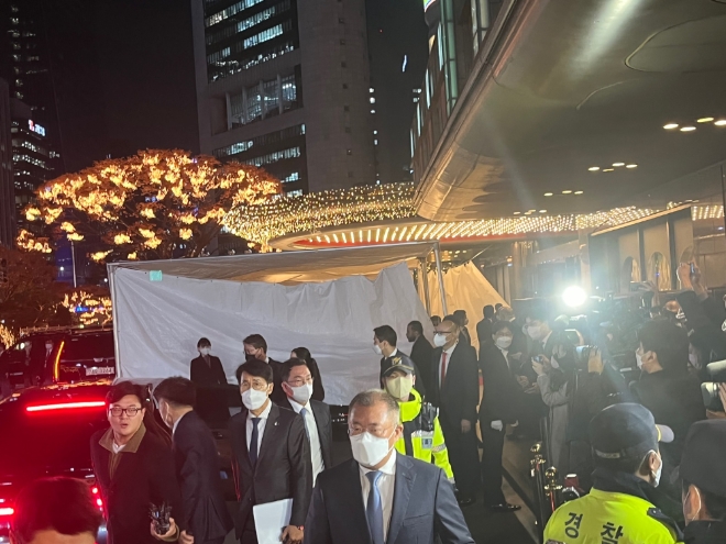 오후 6시경 시작된 빈 살만 왕세자와 재계 총수들의 차담회는 1시간 30분 정도 계속됐다. 오후 7시30분경 이재용 회장을 시작으로 총수들이 한꺼번에 나오면서 취재진들로 인해 일대가 소란스러워지기도 했다.