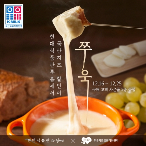 이미지 확대보기스트링치즈, 모차렐라치즈, 구워먹는치즈, 인포켓치즈 등 14종의 국산 치즈를 20% 할인가에 제공한다. 해당 치즈 제품을 구매한 고객에게 ▲치즈 그라인더(2만 원 이상 구매 시) ▲투홈 플레이팅 도마(5만 원 이상 구매 시)가 선착순 증정된다.