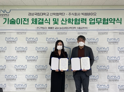 이미지 확대보기빅썸바이오와 경상대는 호흡기 건강 소재에 대한 협력을 맺어 연구 속도를 높이고 건강기능식품 소재를 육성할 예정이다.
