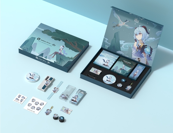 이미지 확대보기이번에 공개된 제품은 휴대폰 '갤럭시 Z 폴드4'와 블루투스 무선 이어폰 '갤럭시 버즈2 프로'다. 둘 모두 원신의 인기 여성 캐릭터 '감우'를 테마로 디자인됏다.