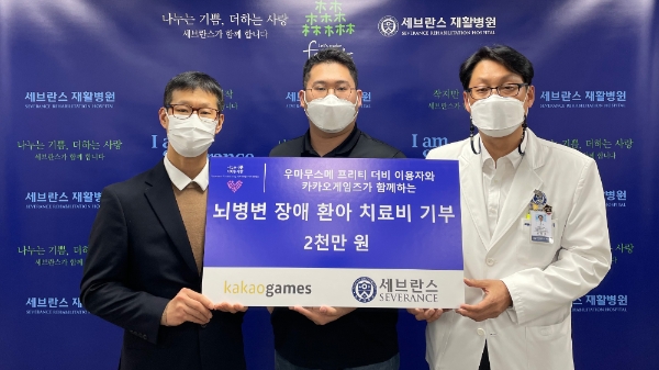 카카오게임즈 관계자와 이용자 대표는 지난 29일 세브란스 병원에 직접 방문, 기부금 전달식을 진행했다. 기부금은 이후 병원 내 저소득층 뇌병변 환아들의 치료를 위해 활용될 예정이다.