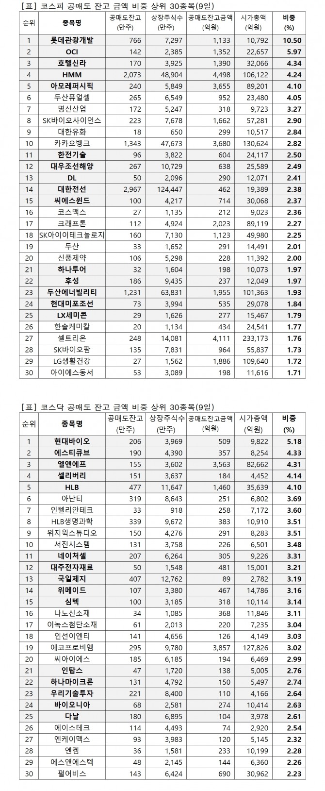 이미지 확대보기유가증권시장 시가총액 대비 공매도 잔고금액 비중(9일)